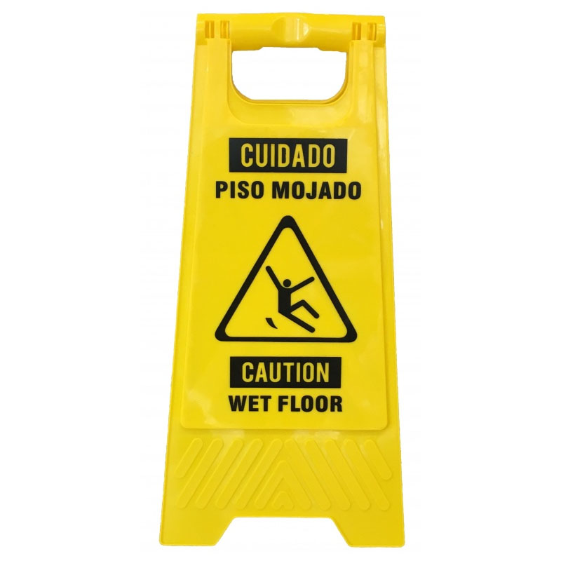 APLICACIONES: Señal de seguridad y prevención de accidentes compuesta de 2 partes utilizada para avisar sobre suelos mojados o con posibles zonas deslizantes.