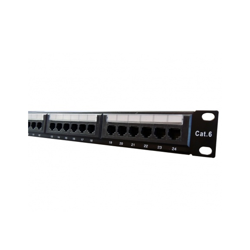 24 puertos categoría 6E. Funciona también con versiones anteriores. (ej. CAT 4 / CAT 5 / Etc.)