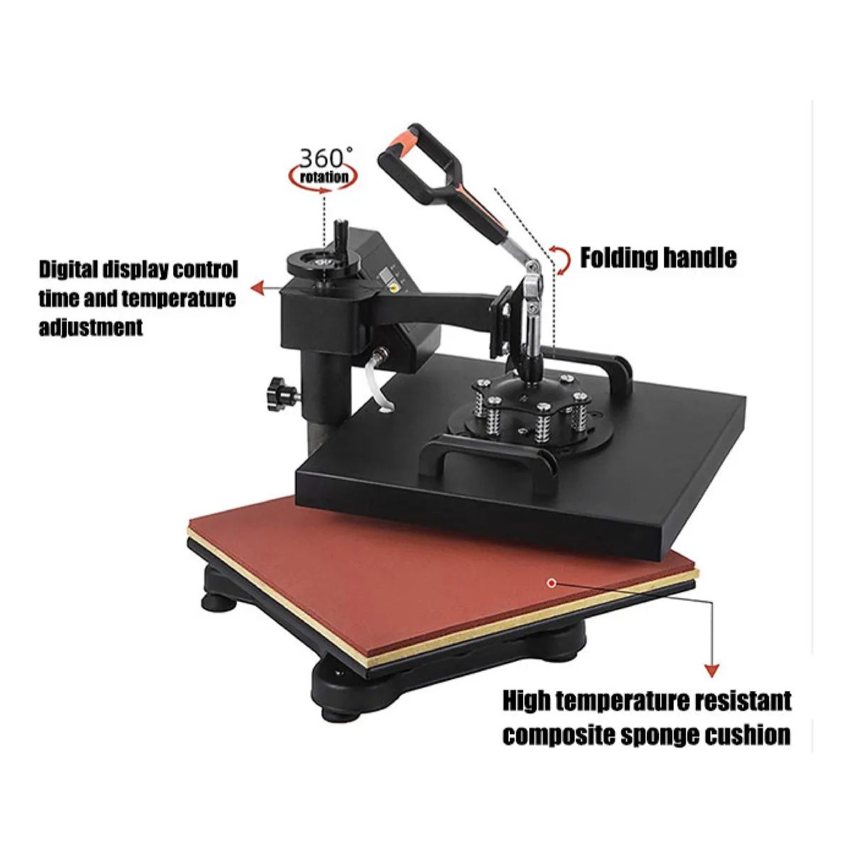Control digital preciso: Cuenta con una pantalla digital que facilita el control de la temperatura (hasta 200°C) y el tiempo (hasta 999 segundos), garantizando un proceso de sublimación exacto y fácil de usar.
