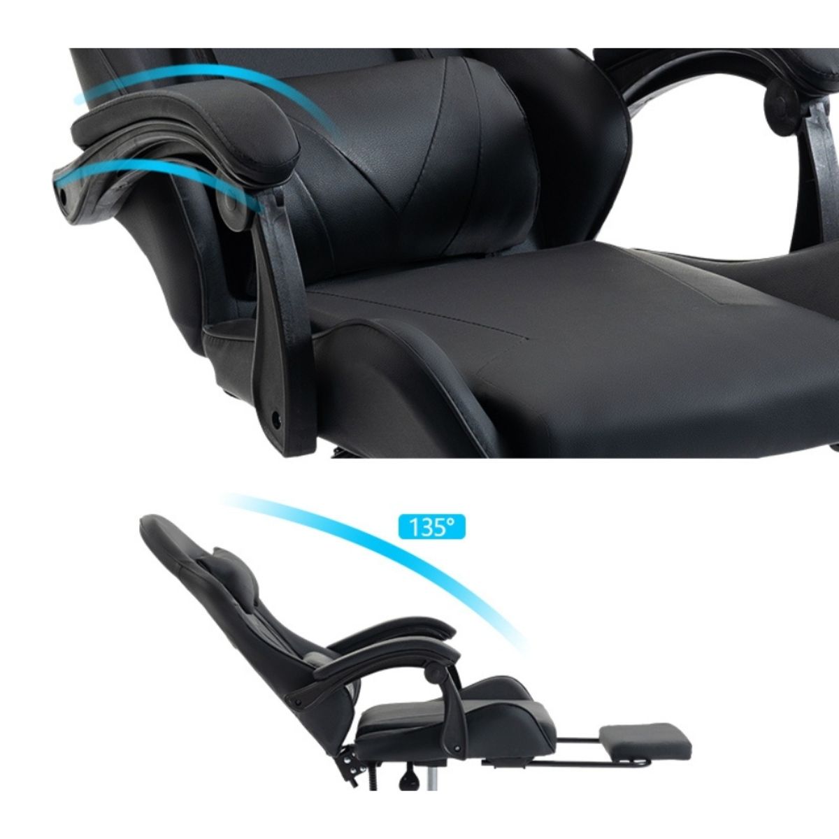Silla Gamer SHOT-2025 Ergonómica Reclinable Con Apoyapiés Y Masajeador Negra/Azul – Gaming